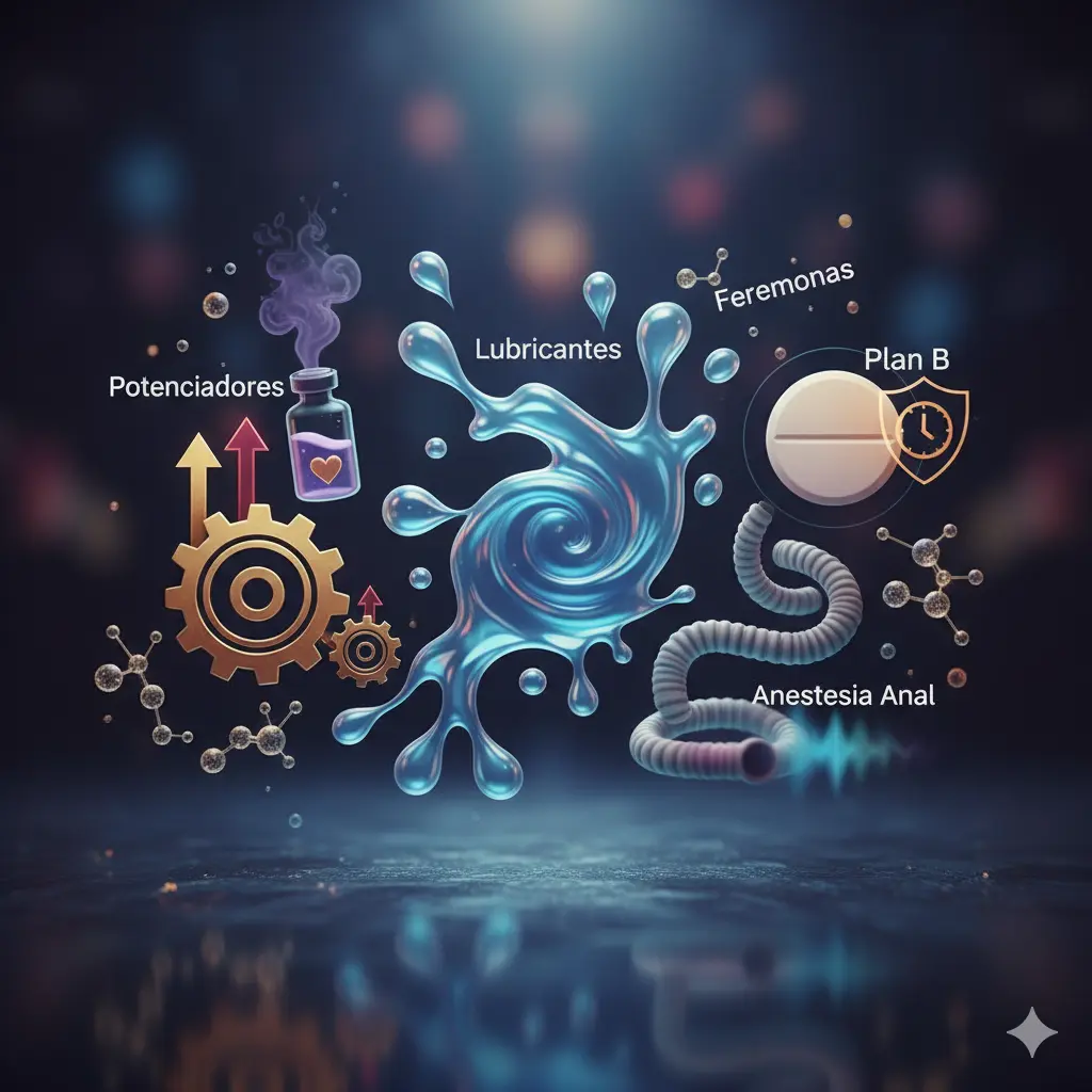 Lubricantes,Potenciadores,  Popper, Plan B,       Anestecia Anal, Feromonas